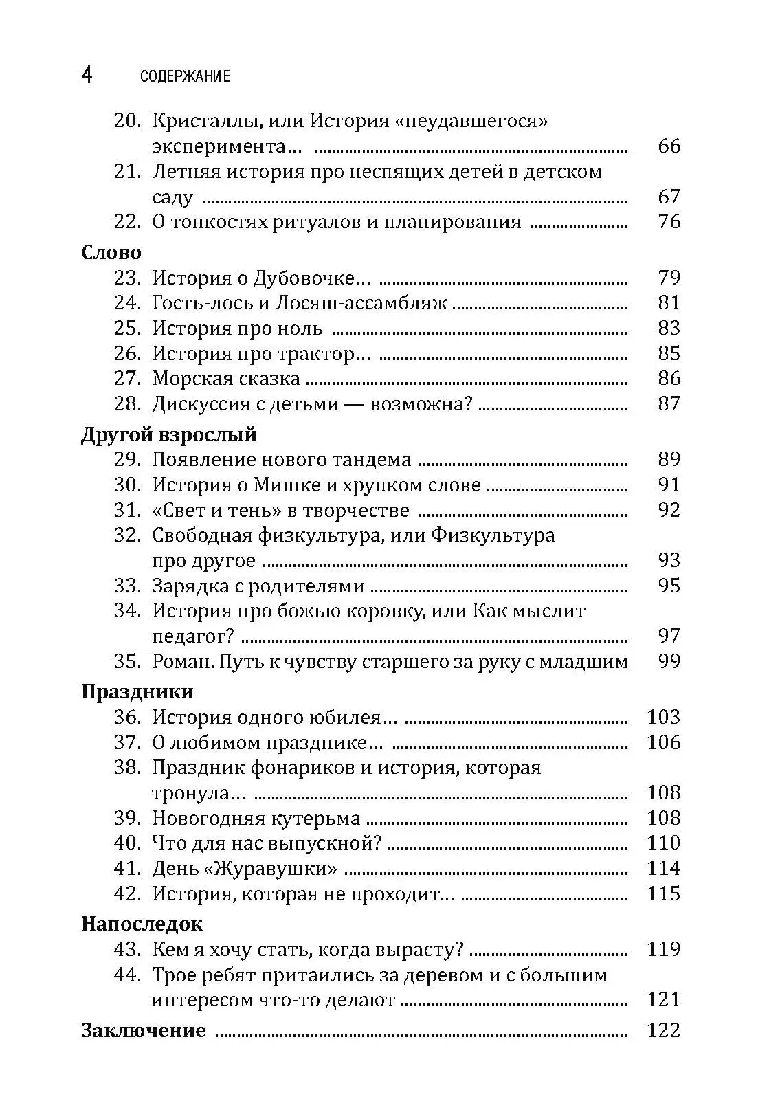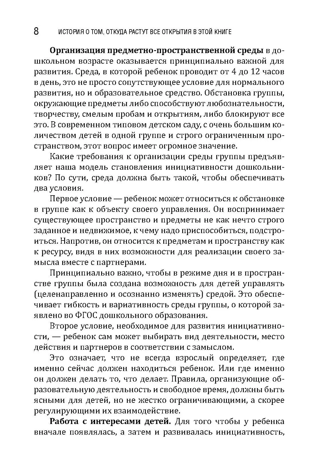 Книга представляет собой сборник историй из практики детского сада на пути создания условий для настоящего детства и настоящих живых встреч взрослого и ребенка в обычном муниципальном саду. Она будет интересна как практикам дошкольного образования, так и экспертам в качестве примеров иллюстраций реализации разных технологий работы с детьми с фокусом на субъектность детей и взрослых. Истории разноплановые и позволяют посмотреть на обычную жизнь в детском саду во всем ее объеме, разглядеть развивающий потенциал простых ситуаций, задуматься о разнообразии действий взрослых и эффектах от этих действий. Педагоги-дошкольники смогут почерпнуть в книге конкретные идеи для работы, а главное — вдохновиться и снова поверить, что их действия имеют огромное значение для развития детей, для всей их жизни, а значит, и для нашего общего будущего.