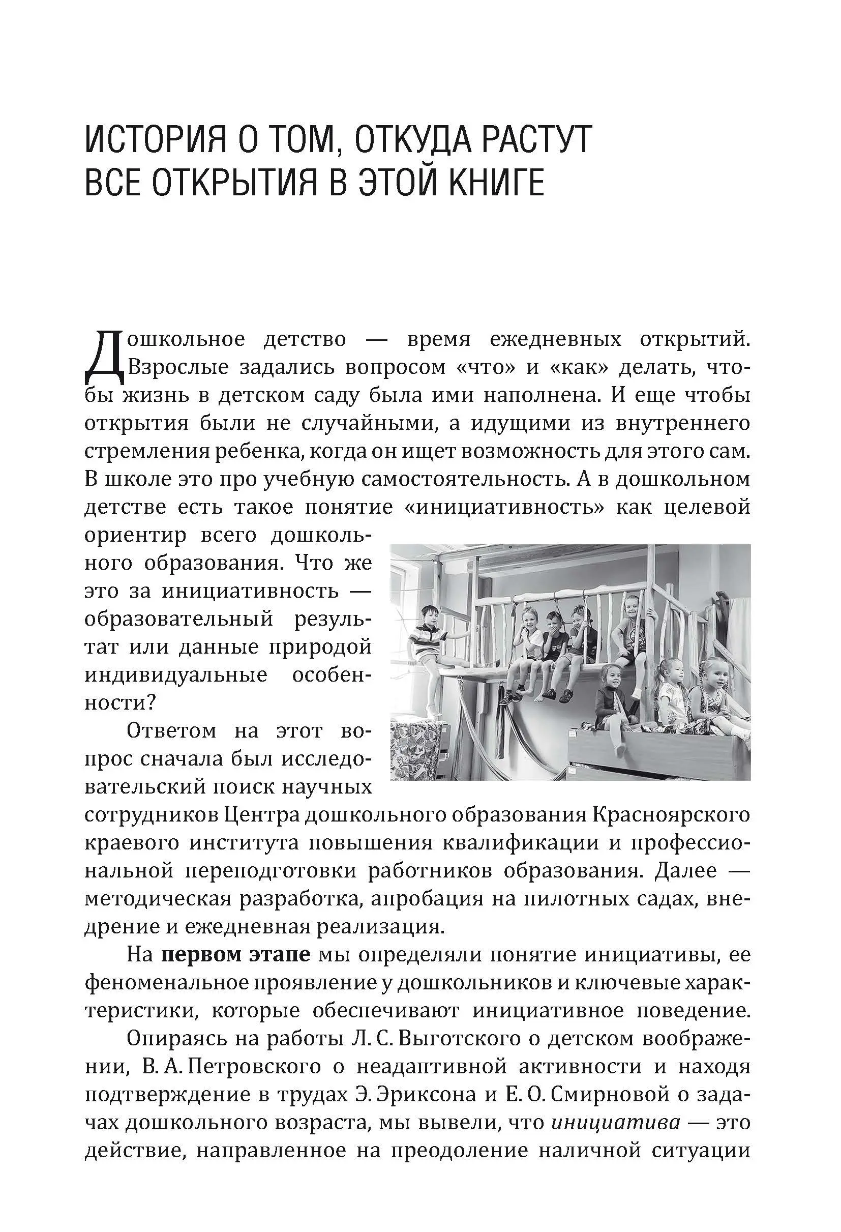 Как может выглядеть настоящее детство в обычном детском саду? Перед вами книга историй из жизни детского сада «Журавушка» г. Красноярска, который много лет стремится к тому, чтобы дети стали хозяевами в своих группах, могли самостоятельно передвигать мебель, обустраивать пространство для игры, оживлять стены рисунками и записками, задавать вопросы, которые станут основой для образовательной деятельности. Все это стало возможно, когда взрослые создали корпоративную культуру, где они сами решают, как будет выглядеть группа, за какие задачи развития браться, с кем работать в команде, где организована масса возможностей для творчества педагогов. В каждой истории главное — это встреча, настоящая встреча ребенка и взрослого, которые рады друг другу и вместе идут познавать удивительный мир.