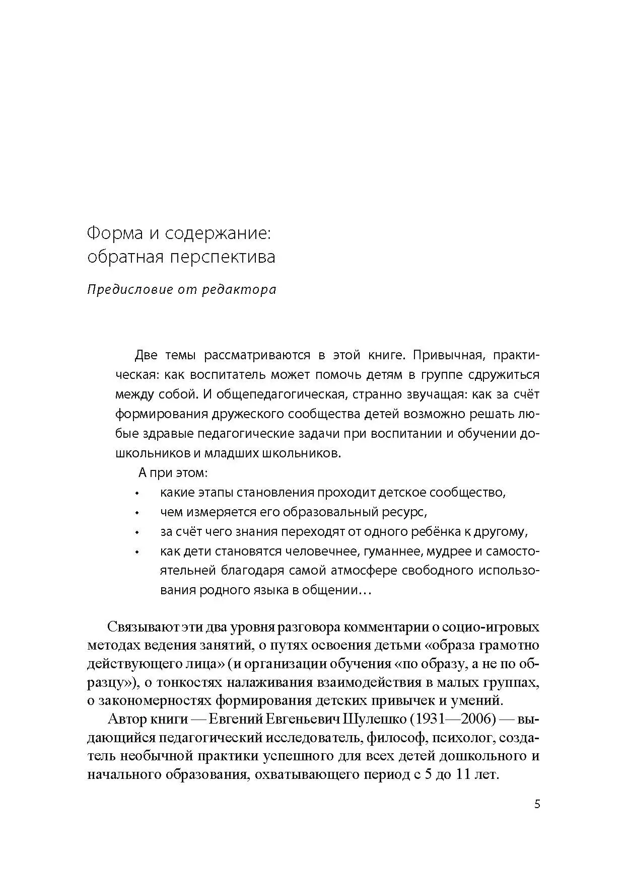 В этой книге внимательно рассматриваются две темы: привычная, практическая — как воспитатель или учитель может помочь детям в группе или классе сдружиться между собой, — и общепедагогическая, менее привычно звучащая — как, формируя дружеское сообщество детей, можно за счёт этого решать любые здравые педагогические